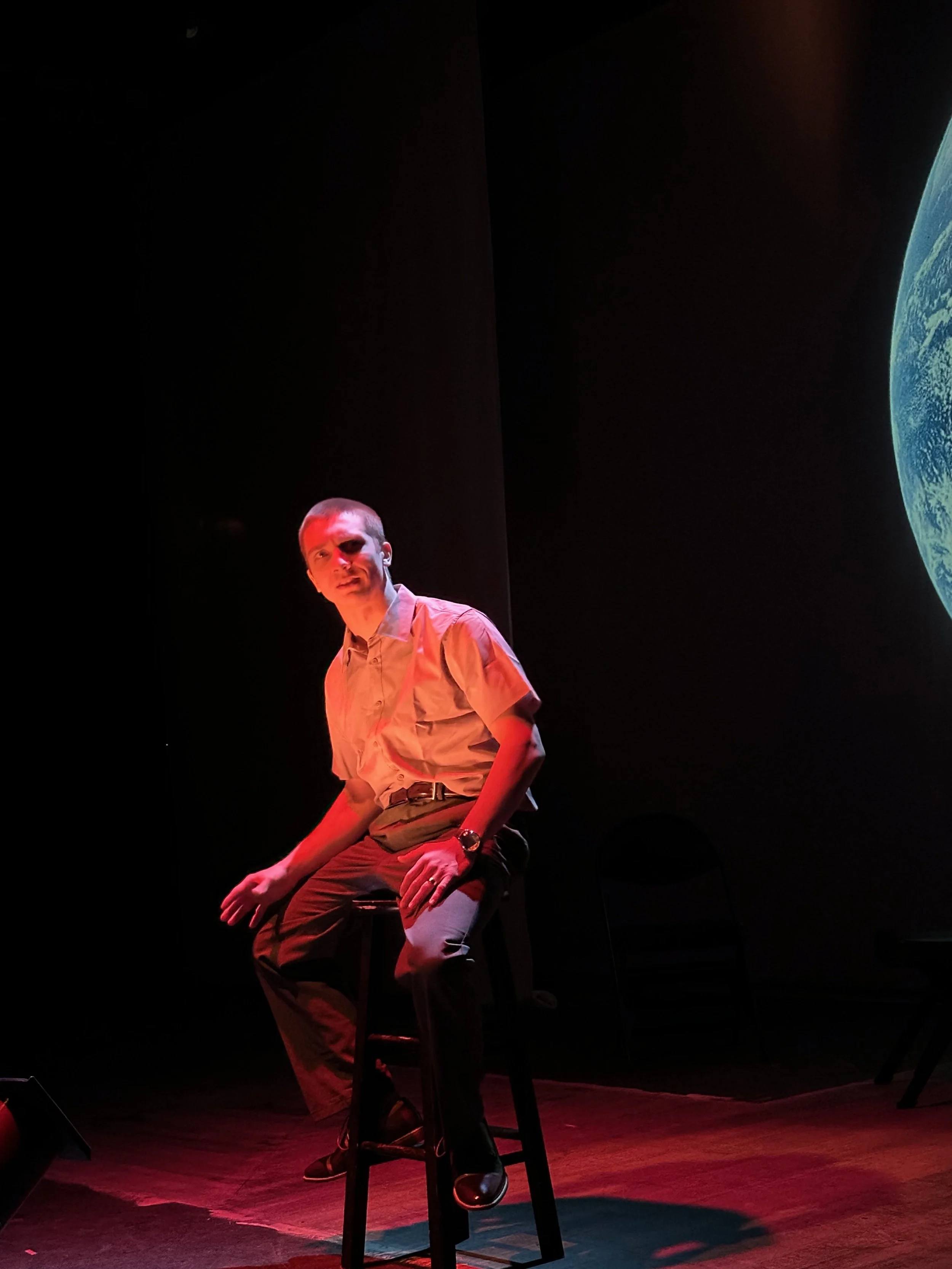 Astronaut Group 1(2025)Griffin Theatre CoWritten and Directed by Bill MassoliaLight Co-Designed with Jack GoodmanProjection Design by Brandon Mardell and Kev KollmanCostume Design by Rachel Sypniewski